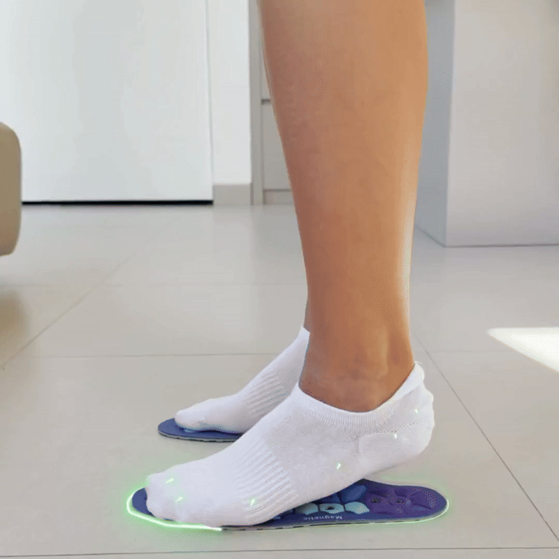 Magneva™ Magnetiska Inläggssulor kombinerar magnetterapi och akupressur för att aktivt stödja din kropp under rörelse. De stimulerar blodcirkulationen och ger dina fötter rätt driv i varje steg.